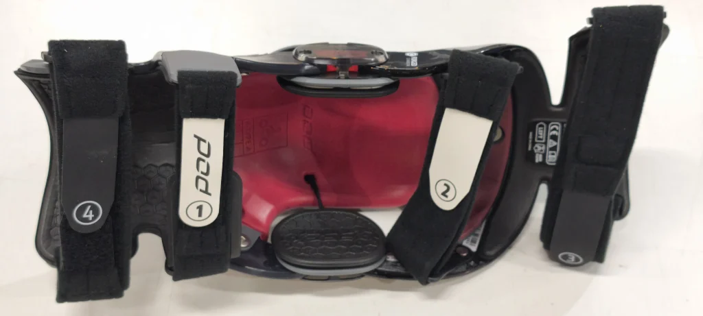 この順序に従って締めていくことで、自然とベストな位置にニーブレースが固定されるようになっています。