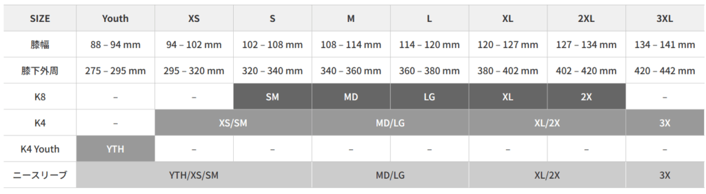 というわけで、PODニーブレースのK4 2.0とK8 3.0のそれぞれの特徴と違い。