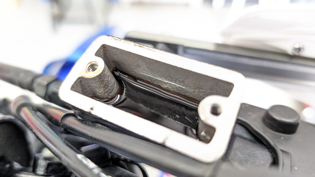 タイヤ交換を終えたあと、ふとブレーキマスターの窓を見ると真っ黒になっていることに気づきました。