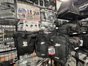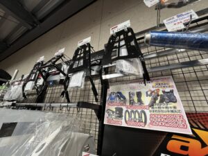 キャンプツーリングなどで沢山荷物を載せる場合、キャリアは必須ですね!車種ごとに設定があるので適合確認などはお気軽にスタッフまでどうぞ