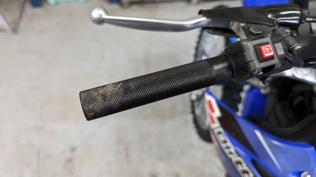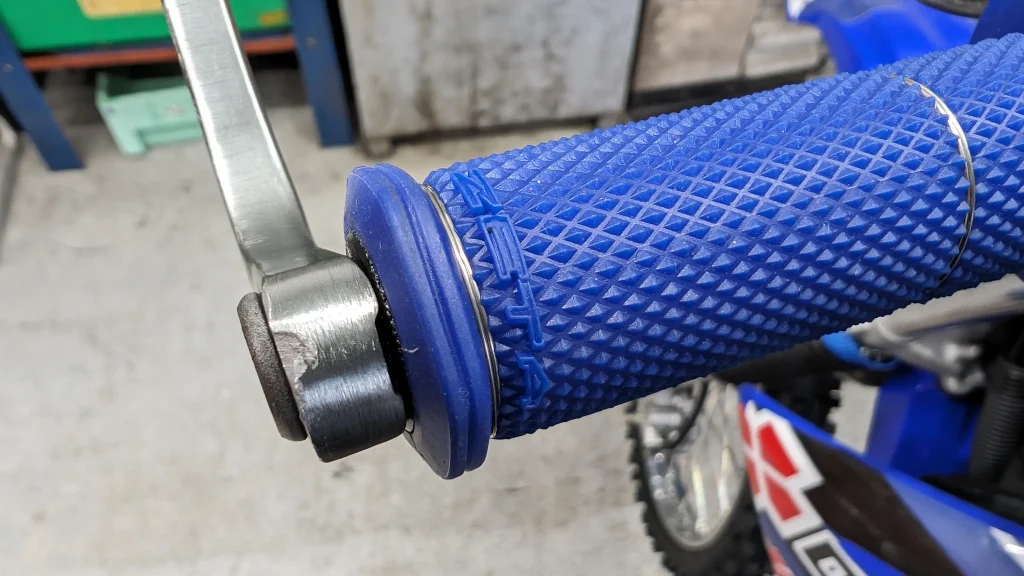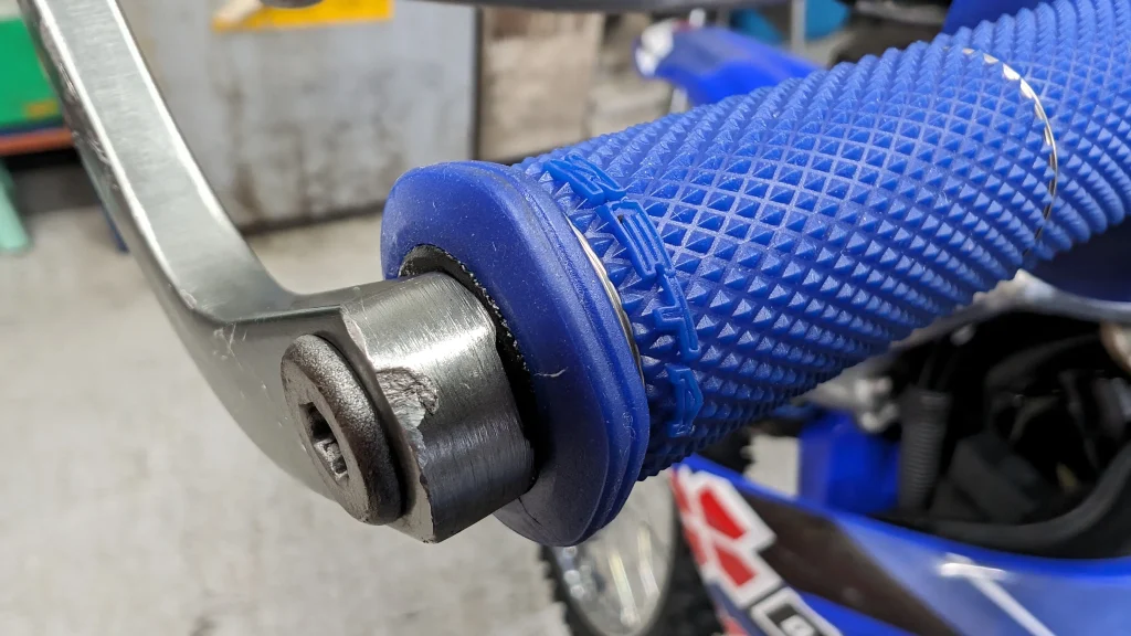 エンデューロではユルユルの路面で転びまくって、グリップの末端がズレかけているバイクを結構見かけます。