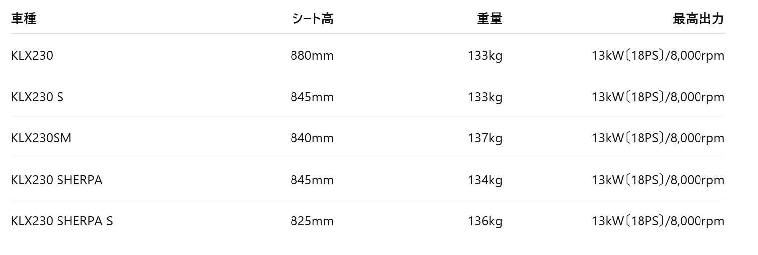 →KLX230シリーズがオススメ。(KLX230SMを除く)