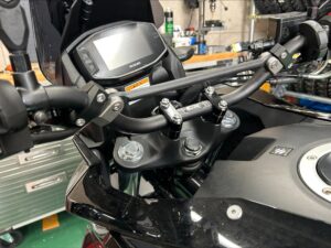 オンロードバイクなので純正はハンドルクランプからの立ち上がりが多く