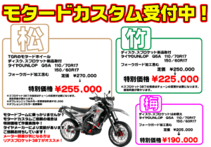 モタードカスタムの相談はダートバイクプラス各店へ!