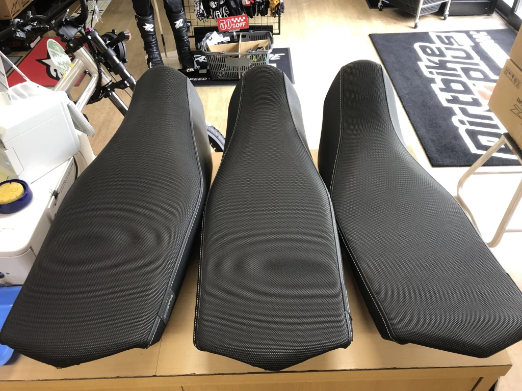 実は神戸店には3種シートのサンプルとセローの実車があるので、実際に跨がり比べていただくことも可能ですよ!